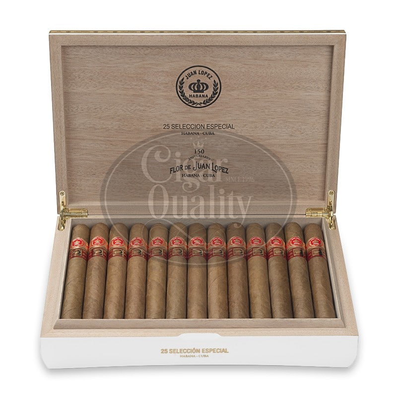 صُنع خوان لوبيز في سبعينيات القرن التاسع عشر. صُنعت خوان لوبيز سيليسيون سيليسيال "Totalmente a Mano con Tripa Larga Entièrement à la main avec une tripe longue - مع الكاب والكرش وأوراق الشجر من منطقة فويلتا أباخو* في منطقة بينار ديل ريو*, كوبامصنوعة من قبل خبراء في لفائف السيجار الكوبي.