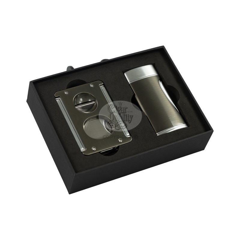 Le Tycoon Set Coupe-Cigares & Briquet Gunmetal est l’accessoire ultime pour tout amateur de cigares, combinant qualité supérieure et fonctionnalité inégalée. Ce set comprend un outil multifonction qui répond à tous les besoins des fumeurs de cigares : un cutter, un coupe-V, une perceuse punch et un porte-cigare.