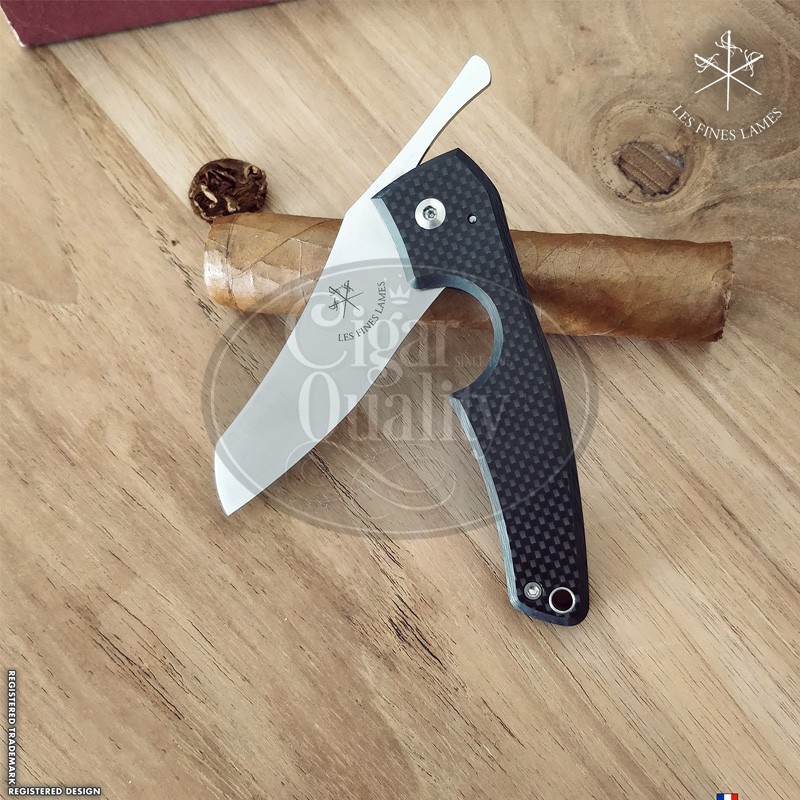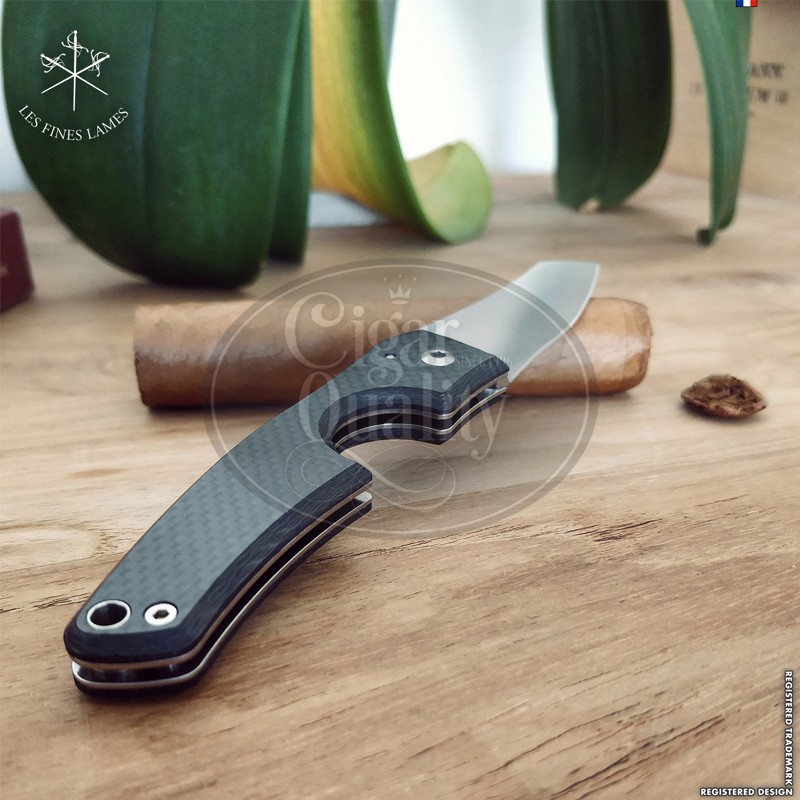 Découvrez Le Petit Composite Carbon 1 coupe cigare Les Fines Lames, le couteau de poche ultime de l’aficionado.