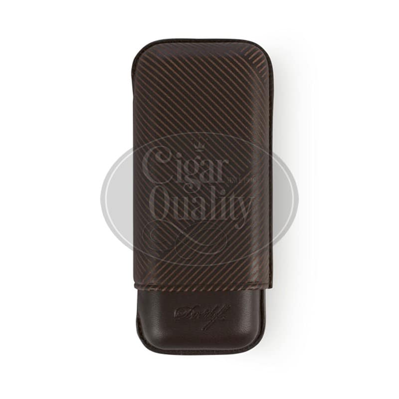 Davidoff Étui à cigares Cuir Brun R-2 Leaf pour 2 cigares. Impression au laser du motif symbolique : La feuille (leaf). Fabriqué en Espagne avec du cuir de vachette doux et souple exclusivement sélectionné par Davidoff.
