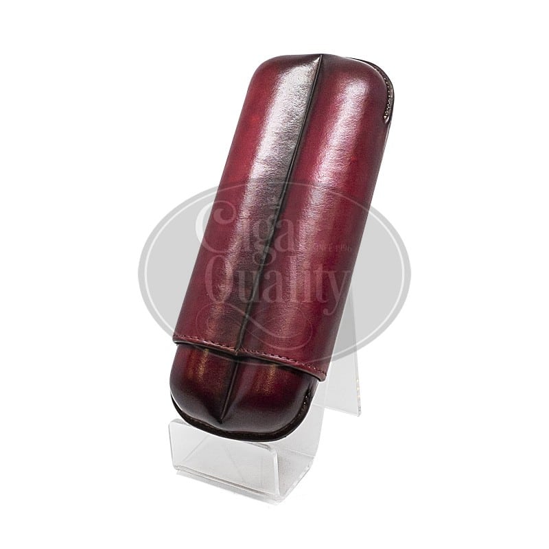 Elie Bleu Étui 2 cigares en cuir bordeau.