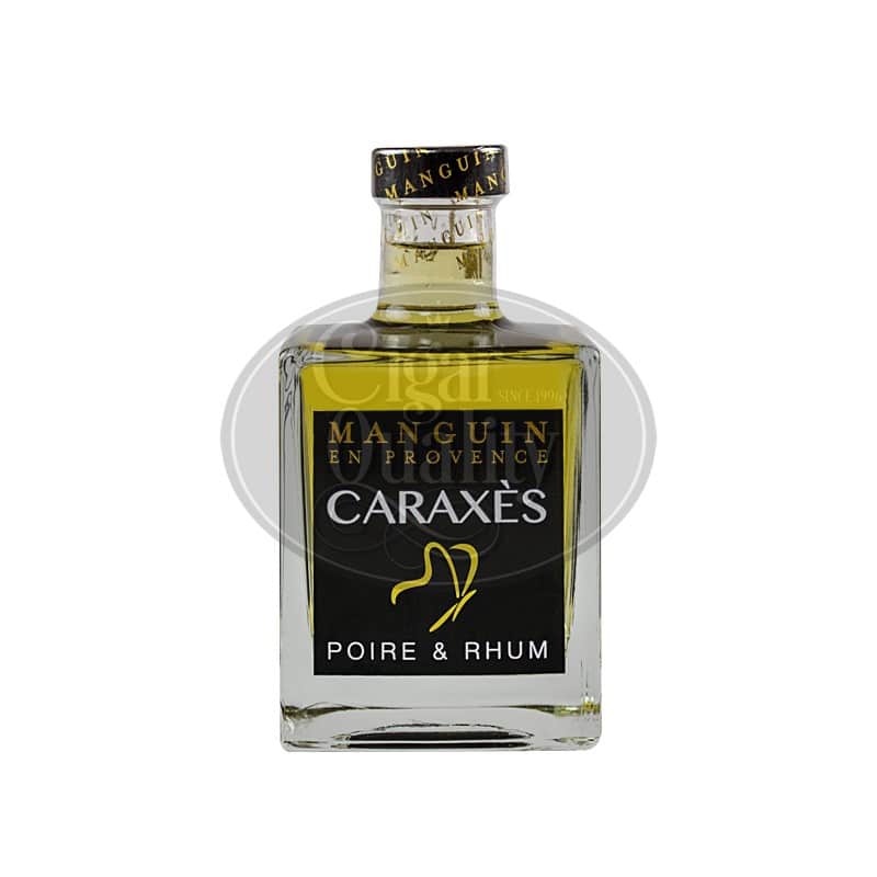 Le Caraxès Manguin Poire & Rhum est une boisson spiritueuse issue d’un mélange d’eau de vie de poires Williams (77%) et de rhum ambré des Caraïbes (23%). Caraxès est le blend de caractère créé par Manguin : mariage d’une eau de vie de poires Williams distillée tout en finesse en Provence et de rhums ambrés des îles Trinidad et Barbados dans les Caraïbes. Fraîcheur de la poire arrondie par les notes vanillées et épicées du rhum : un alcool subtil et gourmand. Le nom Caraxès est inspiré du Papillon méditerranéen « Charaxes Jasius » qui se gorge de fruits mûrs.