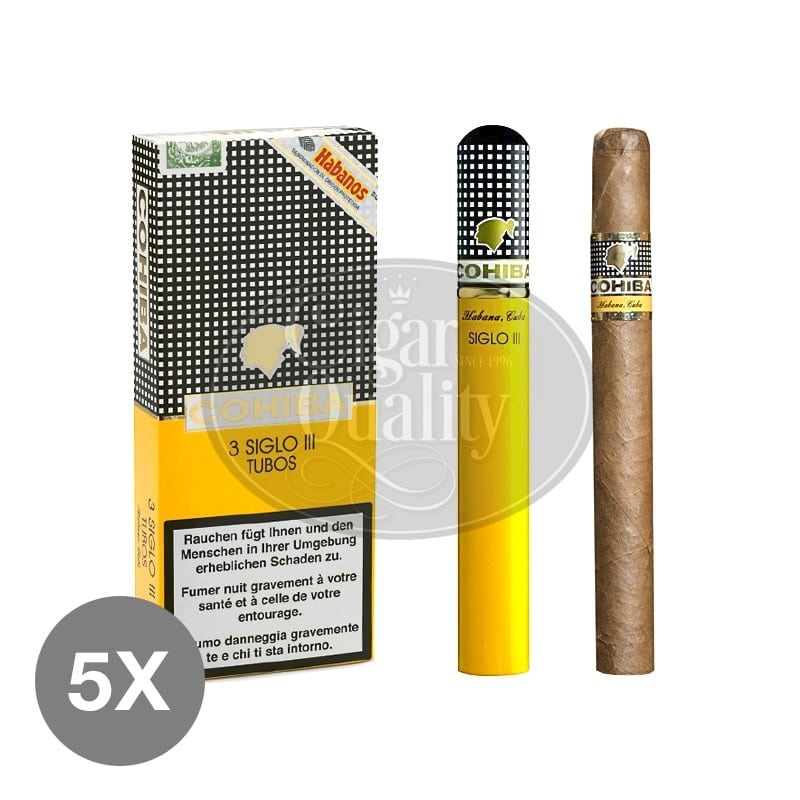 5 boîtes de 3 cigares en tube.