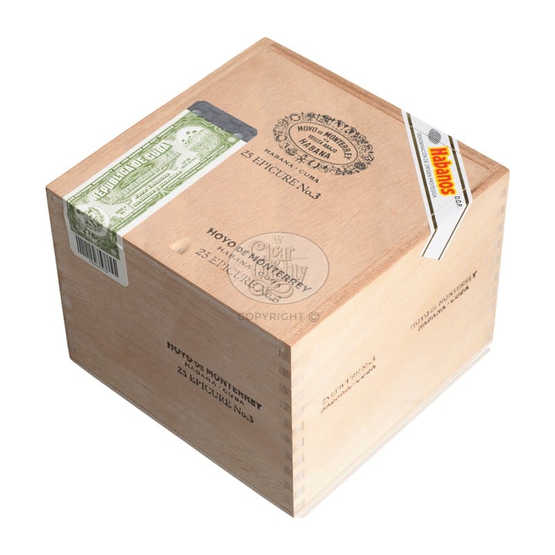 Le cigare Hoyo de Monterrey Epicure No. 3 est soigneusement présenté dans un coffret en bois. Ce coffret contient 10 puros cubains réalisés “Totally Handmade with Long Filler”, garantissant une expérience authentique et haut de gamme pour les amateurs de cigares.