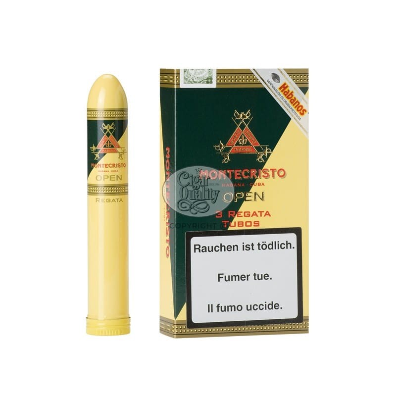 Chaque vitole possède une tête pointue, biseautée, et un pied plat. Cette forme est appelée Belicoso par certains mais le nom officiel du module est Forum. Le cigare Montecristo Open Regata A/T possède une longueur de 140 mm, un diamètre de 19 mm et un calibre 46. Un Montecristo Open Regata A/T est obligatoirement serti de deux bagues : sur la deuxième figure le nom Open en lettres dorées suivi du nom de la vitole (Regata). Il libère un arôme boisé.