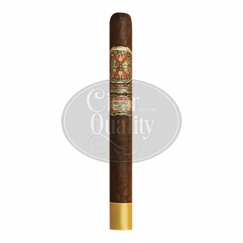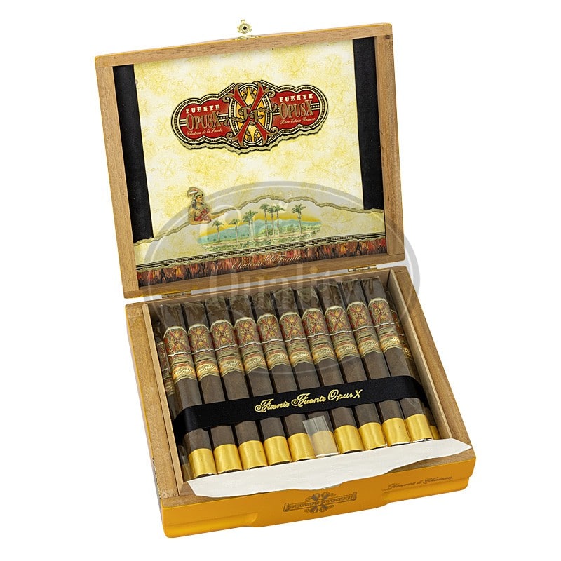 La boîte jaune-orangée, signature du Arturo Fuente Fuente Opus X Oro Oscuro Reserva D’Chateau, promet la découverte d’un trésor à la hauteur des attentes des adeptes de la marque. A l’intérieur de cet écrin exquis, vous découvrirez un Churchill parfaitement confectionné, arborant la magnifique cape dominicaine du Opus X qui fut soumise à un processus de fermentation prolongé dont la recette hautement secrète reste à découvrir. C’est ce procédé qui permet à la cape de développer son coloris unique; un Maduro noir et chocolaté. Les arômes du cigare sont ainsi redéfinis dans leur puissance et leur intensité.
