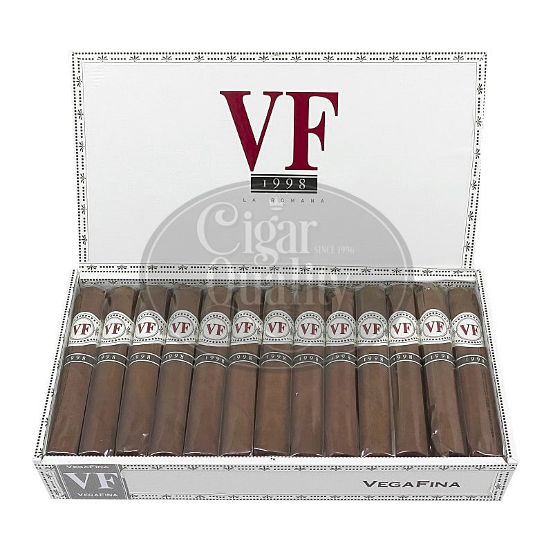 Le cigare VegaFina 1998 La Romana VF52 est un cigare «vieilli» dont le nom rappelle l’année de création de la marque. Cette ligne premium propose des cigares fabriqués à la main avec des feuilles de tabac soigneusement sélectionnées qui ont mûri pendant minimum 3 ans. Un processus délicat résultant du travail approfondi du Grupo de Maestros de Tabacalera de García, l’usine de la ville dominicaine de La Romana.