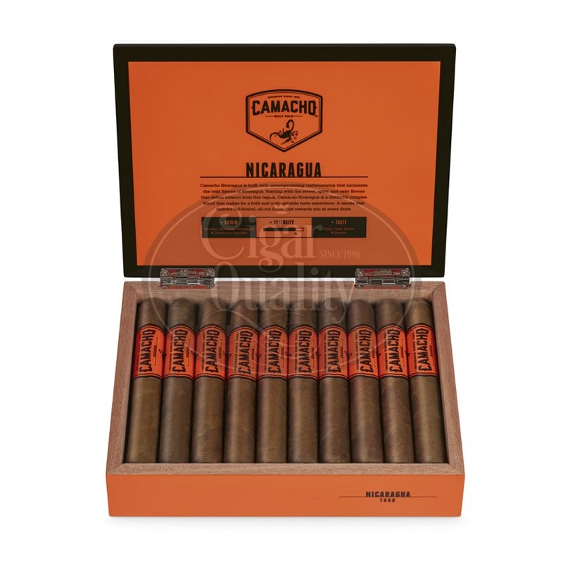 Les cigares Camacho Nicaragua Toro sont forgés dans le feu du Nicaragua. Fabriqués avec un savoir-faire sans compromis, nos mélangeurs utilisent les saveurs écrasantes et uniques du Nicaragua pour créer un mélange extrêmement complexe avec une expérience gustative incomparable. Certaines choses ne peuvent pas être apprivoisées. Ces cigares en font certainement partie. Le contrôle du volume à l’arrêt et la pédale d’accélérateur pied au plancher ont été l’inspiration pour regrouper les saveurs sucrées et de chêne du sol volcanique dans ces blocs d’alimentation et faire battre plus vite le cœur des connaisseurs de Camacho.