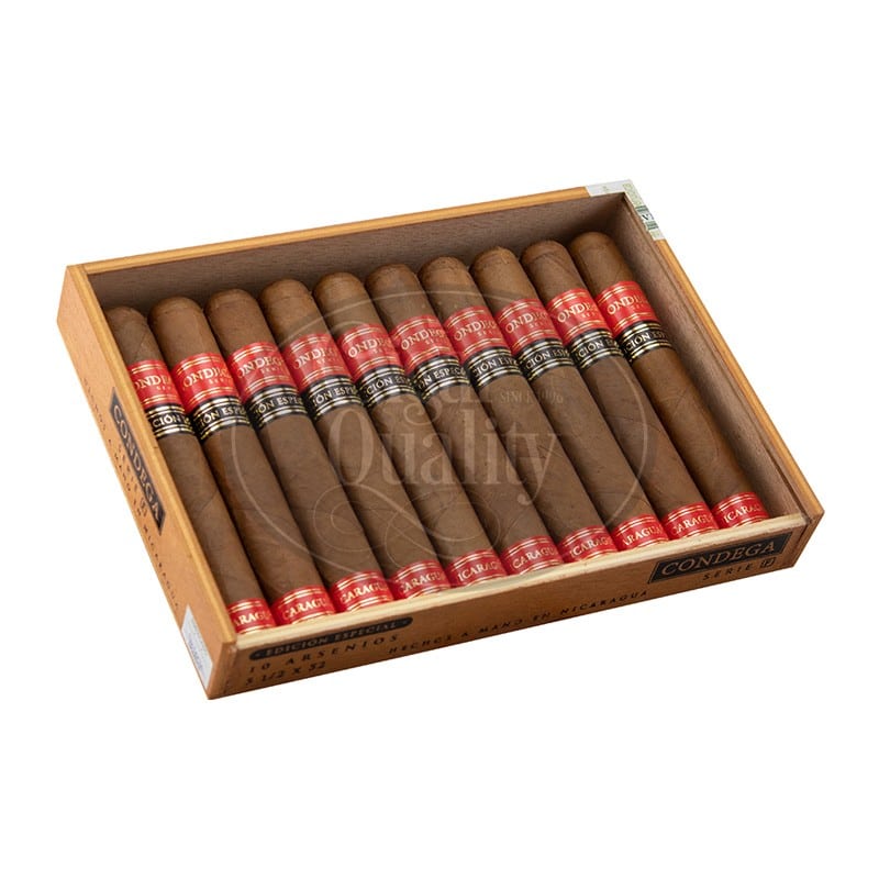La série « F » de Condega présente un doux arôme de bois de cèdre et de cannelle enveloppé dans une belle et douce cape Corojo très caractéristique de Casa Fernández. La série ‘F’ est connue pour son arôme intense et sa combustion uniforme, ce qui donne un grand plaisir à la fumée et est un plaisir à tout moment.