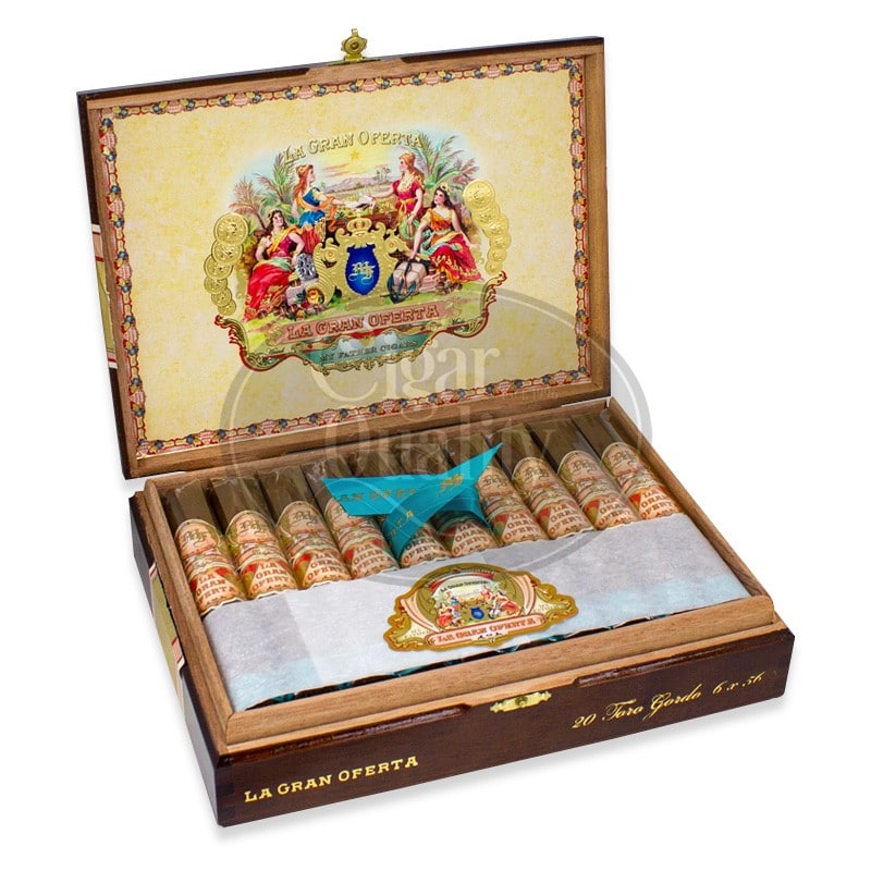 Don Pepin Garcia My Father La Gran Oferta Toro Gordo signifie « la grande offre », c’est un nouveau blend de premier ordre de la légendaire équipe père et fils de Don Pepin et Jaime Garcia. Les cigares présentent une superbe cape Habano équatorienne avec des sous capes et tripes nicaraguayennes, cultivées dans la ferme familiale. Le résultat est une fumée riche et exceptionnellement bien équilibrée avec des saveurs irrésistibles de chocolat noir, de terre et de chêne crémeux, soutenues par la signature épicée de My Father ™. Sublimant l’expérience globale de fumage, la construction est de premier ordre, une combustion impeccable et des arômes de tabacs suaves.
