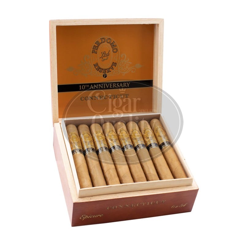 La magnifique cape de couleur caramel écossais du Perdomo Reserve 10th Anniversary Connecticut Epicure équatorien, dégage de douces notes de crème et de miel. La sous-cape et les tripes nicaraguayennes de graines cubaines offrent des arômes riches avec des nuances de chêne. La combinaison du mélange offre des saveurs élégantes et complexes pour une finition soyeuse et lisse.