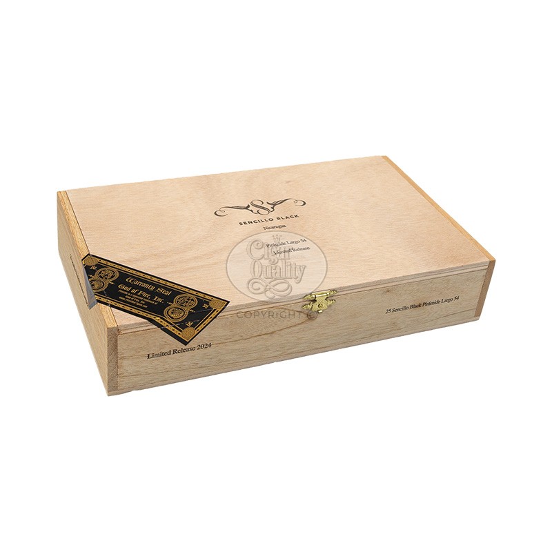 Sencillo Black est une interprétation affirmée de la marque Sencillo. Le Sencillo Black Piramide Largo 54 est conçu pour une dégustation quotidienne tout en conservant une identité marquée. Entièrement roulé à la main, il est composé d’une cape Habano nicaraguayenne, d’une sous-cape du Nicaragua et d’une tripe issue du Nicaragua, du Honduras et du Mexique.