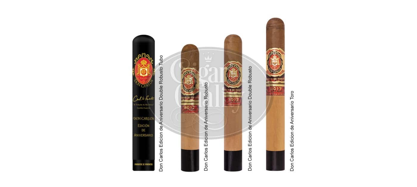 Extrait de Cigar Aficionado : « La famille Fuente fabrique les cigares Arturo Fuente Don Carlos depuis 1976, soit depuis quatre ans de plus que la République dominicaine. Ce mélange est la création de Carlos Fuente Sr, le patriarche de la famille. En 2006, son fils, Carlos Fuente Jr, a créé le Don Carlos Edición de Aniversario pour célébrer les 30 ans des cigares Don Carlos. Il a remplacé la cape camerounaise par la feuille dominicaine cultivée à l'ombre qu'il utilise sur les Fuente Fuente OpusX. Il a également augmenté considérablement la puissance du cigare. Le résultat est un mélange extrêmement intense et complexe, surtout dans la taille Double Robusto. Ces cigares sont merveilleux, mais particulièrement difficiles à trouver en raison de leur production extrêmement limitée. »