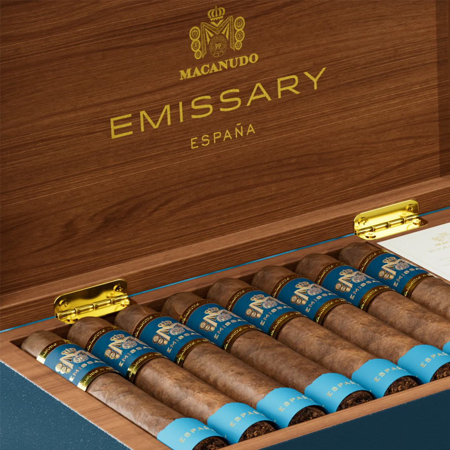 Le Macanudo Emissary España est un cigare premium d’une grande finesse, né d’un assemblage de tabacs exceptionnels provenant d’Espagne, du Nicaragua, de Colombie, de République dominicaine et des États-Unis. Son tabac espagnol, cultivé près de Riolobos à partir de graines de La Havane, confère au mélange une profondeur et une structure aromatique remarquables.