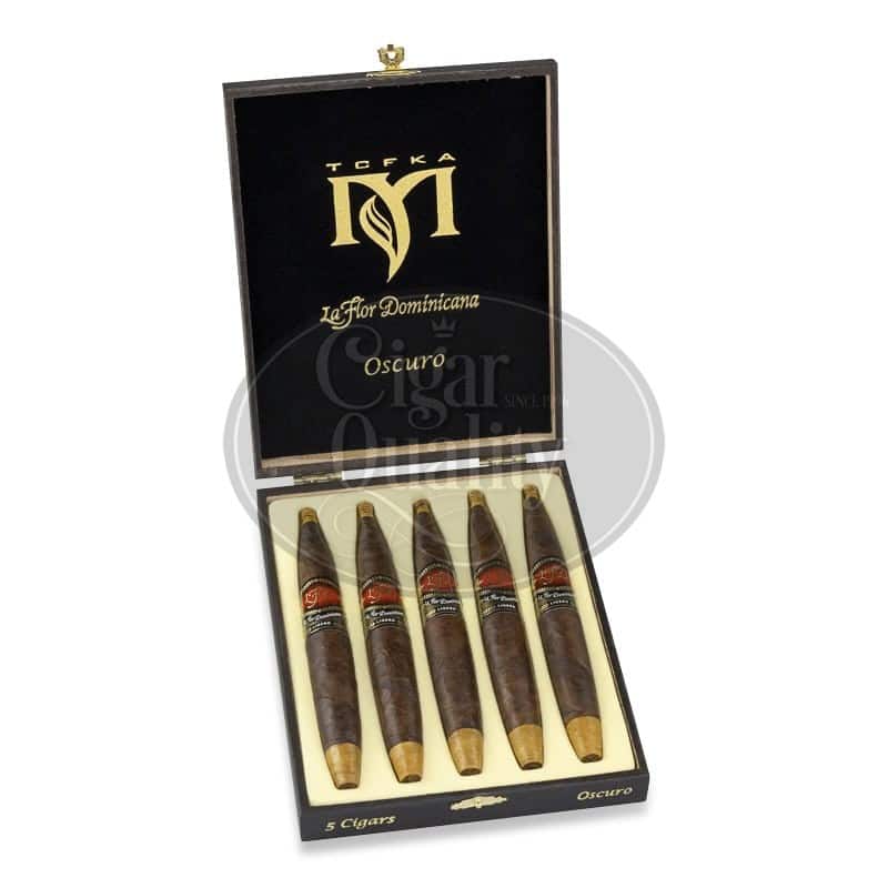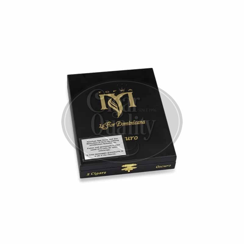 La Flor Dominicana Mysterio Oscuro cigar est disponible en une seule taille ; un Perfecto de 19.84 mm x 177.8 mm (7 x 55) en boîte de 5 cigares. La Flor Dominicana est l’une des très rares marques qui cultivent, vieillissent et traitent leurs propres tabacs. De plus, leur ferme est stratégiquement située à La Canela, en République dominicaine. Après des années de vieillissement de leurs propres tabacs Ligero cultivés dans leur domaine, La Flor Dominicana était prête à produire son premier cigare corsé. De plus, les cigares La Flor Dominicana Mysterio Oscuro sont dotés d’une cape Sumatra équatorien et sont remplis de tabacs dominicains cultivés dans le domaine.