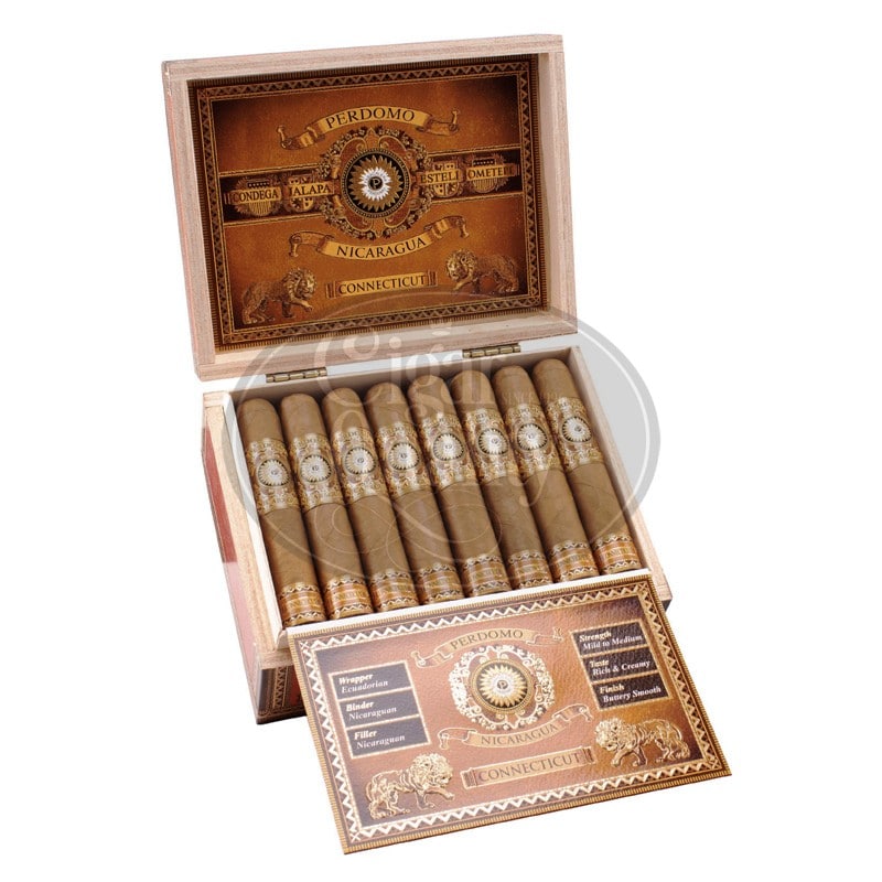 Perdomo 尼加拉瓜波旁桶陈酿康涅狄格 Robusto 雪茄 它的厄瓜多尔康涅狄格茄衣在波旁酒桶中陈酿 8 个月之久,与 6 年陈酿的古巴和尼加拉瓜填充烟草完美融合,带来浓郁的奶油烟雾,余味中带有淡淡的焦糖和雪松香味。