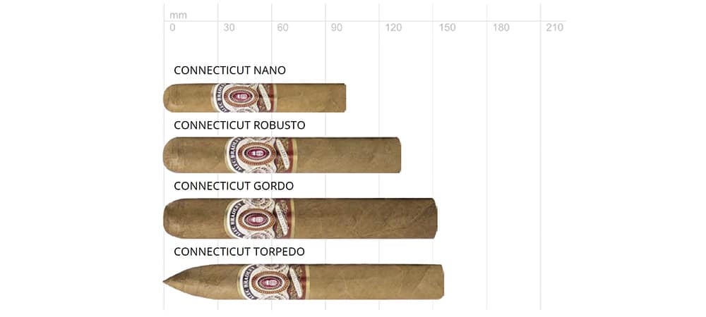 les cigares Alec Bradley Connecticut ont été présentés pour la première fois au salon IPCRP 2012 et ils ont immédiatement fait sensation. La cape brune dorée, qui est pratiquement sans veine, donne à ce cigare sa belle enveloppe. Une fois allumé, un mélange de teintes classiques et modernes du Connecticut se déplie. La force classiquement douce est combinée avec un arôme moderne et complet, ce qui signifie que l'Alec Bradley avec la ligne Connecticut offre une variante contemporaine d'une page de couverture bien connue.